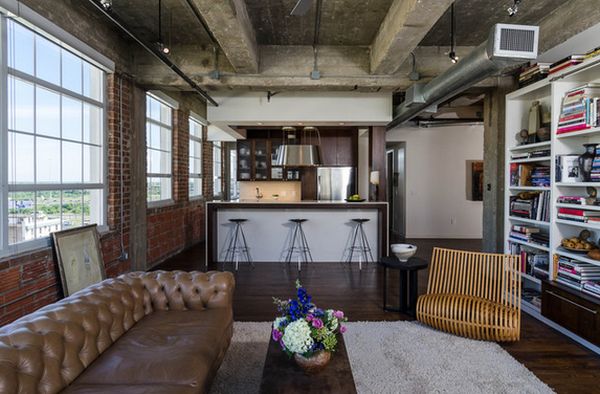 Основните му характеристики са студенина, строгост, лаконичност, функционалност, яснота, конкретност, деловитост, динамизъм от една страна и хармонично пространство, светлина и форми на предметите, идеални пропорции и сдържан декор – от друга.Интериорът в този стил е подходящ най-вече за големи помещения, разделени на функционални зони с помощта на светлинни прегради и врати от стъкло (прозрачните плъзгащи се врати с алуминиева рамка не само изглеждат добре, но са и много удобни и функционални, тъй като спестяват пространство). За индустриалния стил са характерни откритост на конструкцията, съществуващи тръби, арматура, въздухопроводи, кабели и асансьорни шахти биват на показ, създавайки сложно структурирано пространството. В стила се използват съвременни материали, основните от които са метал и стъкло, бетон, камък и натурално дърво, а крепежни елементи като болтове, нитове и други играят роля на декорация, като липсата й е компенсирана от „игра“ на светлината върху стъклените, хромираните и металните повърхности. Стените са боядисани, с гладка и лъскава текстура или покрити с декоративна мазилка. Подовете биват с керамични плочки или естествен камък, а таваните с акрил или открит бетон. Белият цвят е доминиращ, но освен него се използват и други неутрални бледи цветове като кремаво, сиво, жълто, червено, синьо, кафеникаво, пясъчно. Понякога се прилага и черно като акцент. Тази цветова схема заедно с конструктивният компонент на интериора прави помещенията много просторни и светли. Мебелите, както и всичко останало в индустриалния интериора се подчиняват на функционалността със строги геометрични форми и едноцветност и напомнят на офисните мебели. Материалите са кожа, пластмаса, метал, стомана и хром. Други подходящи елементи от обзавеждането са маси със стъклени плотове със строго правоъгълна или кръгла форма, столове с метални крака и гръб, масичка за кафе на колелца. Повърхностите са равни и гладки с метален обков. Пълното отсъствие на декорация се компенсира с: игра на светлината, блясъка на хромираните и метални повърхности, като към това могат да се добавят естествени тухли и разнообразни изкуствени материали. Най-добрите „дрехи“ за прозорците в Индустриален са хоризонталните или вертикалните щори без рамки и декор или завеси, които непременно трябва да са изработени от едноцветна, мека, нито много тънка, нито прекалено дебела материя. За декорация на голите стени могат да се оживят с големи съвременни авторски фотографии в леки метални рамки (за предпочитане са черно-белите снимки) или картини с абстрактни изображения и графика. Отделна тема е осветлението, което тук играе два пъти по-важна роля отколкото във всеки един друг стил. А то е важно не и само по себе си, но и като способ за подчертаване на достойнствата на дадените материали. И особено на материалите с блестяща и огледална повърхност. Столовете и креслата – от пластмаса, хромиран метал и изкуствена кожа. Най-основното – максимум функционалност, екстравагантни форми и естествено, минимализъм.